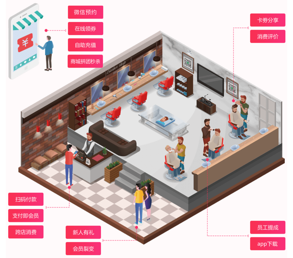 会员开卡时填写推荐人,会员消费时,推荐人将获得一定比例的积分或者现金奖励
