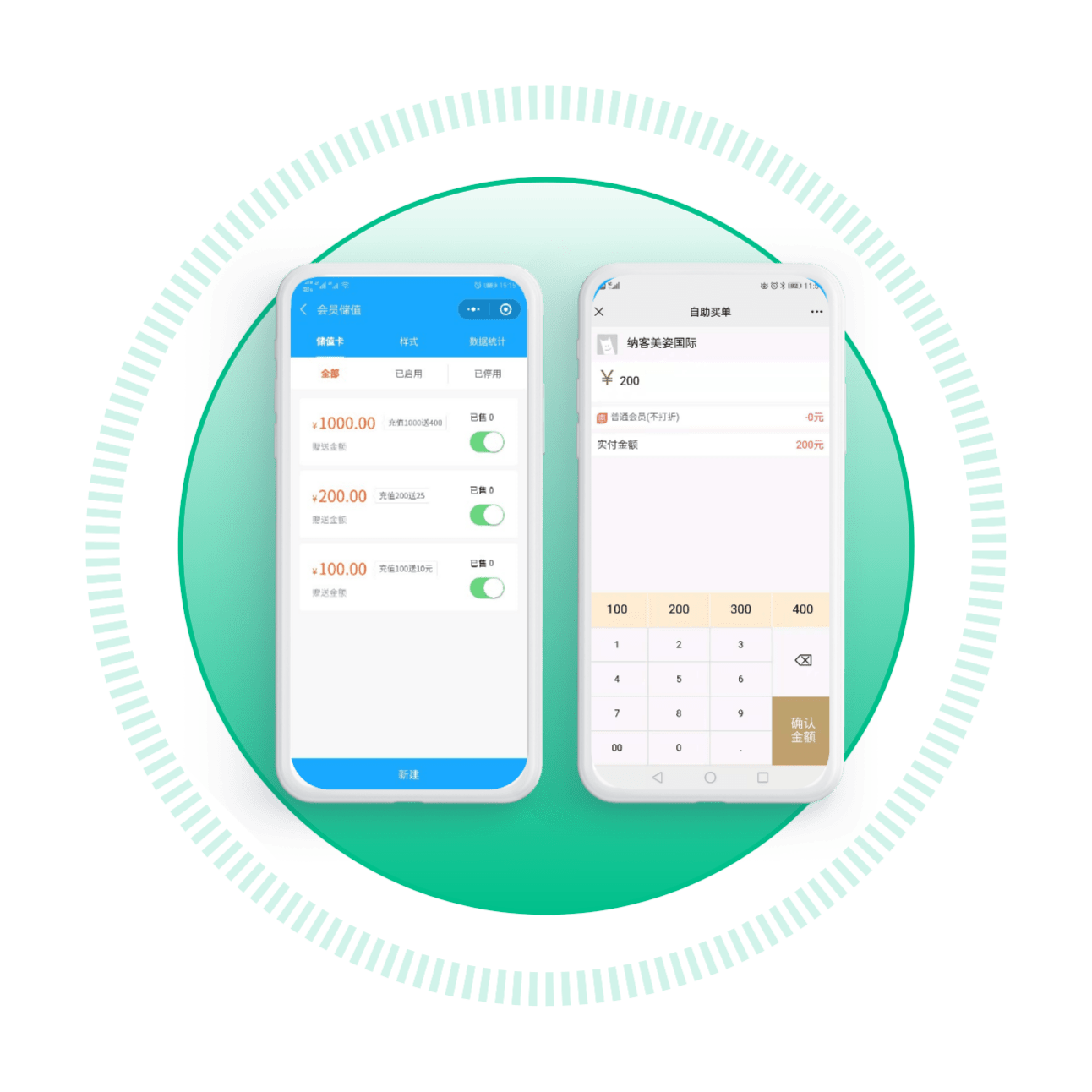 顾客支付的时候系统自动展现储值或消费营销方案,客户按需充值或者消费送代金券提高门店经营业绩和提升客户复购率