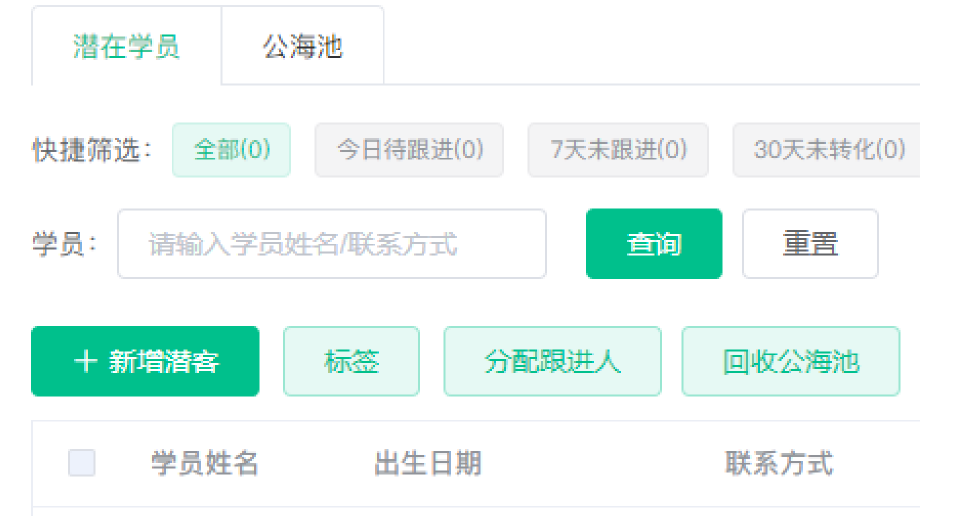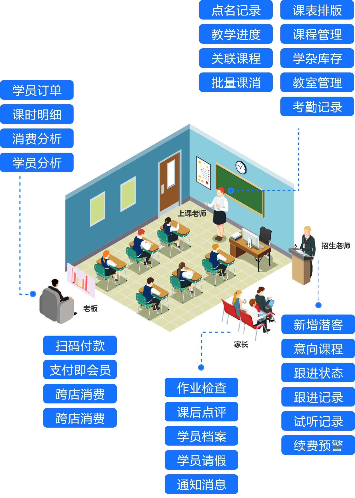 潜客管理、跟进记录、试听记录、续费预警等功能将大幅度提升招生管理的效率