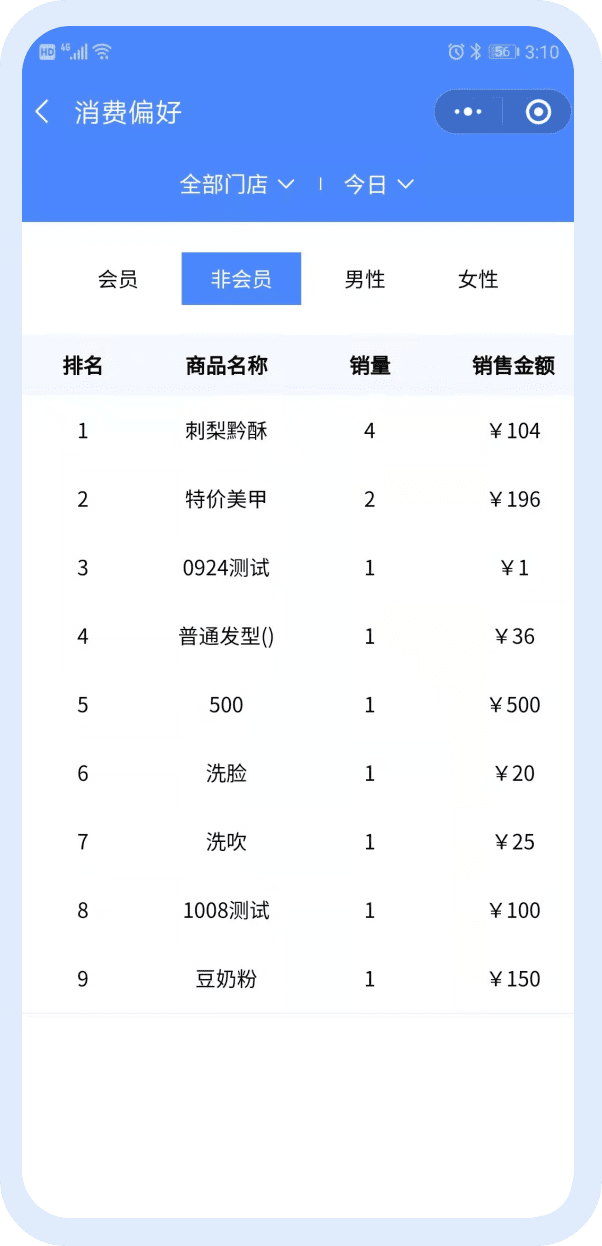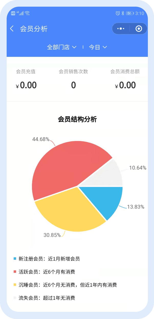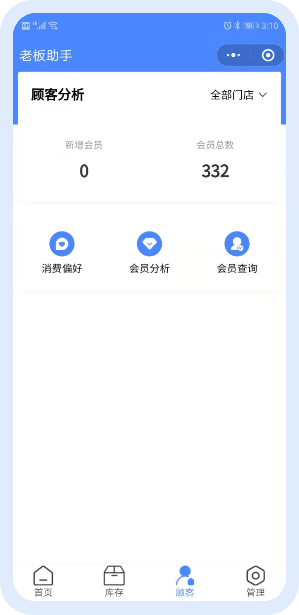 可以查看会员数、消费偏好、会员分析、会员查询等内容