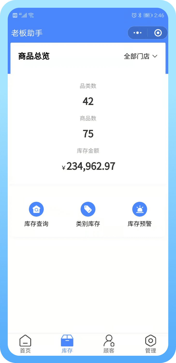 杏耀代理软件上面的销售以及商品进销存情况,再老板助手上面可以随时查看各项数据情况