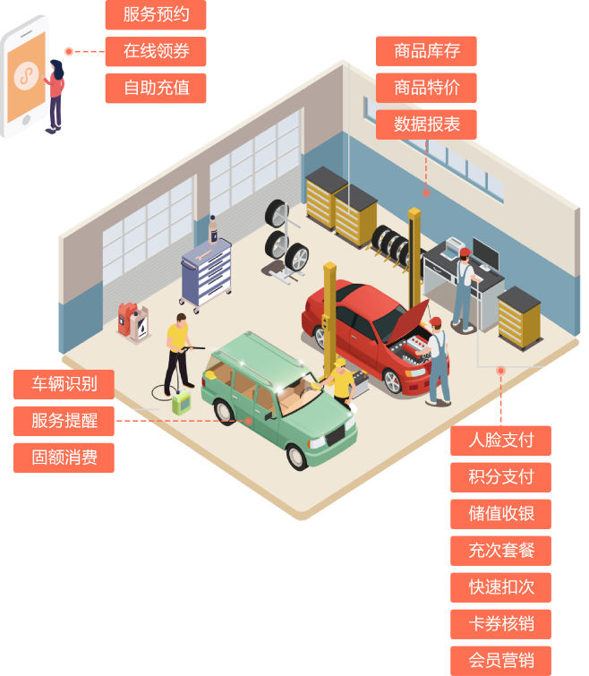 系统支持全方位会员管理及聚合支付,汽车门店会员收银管