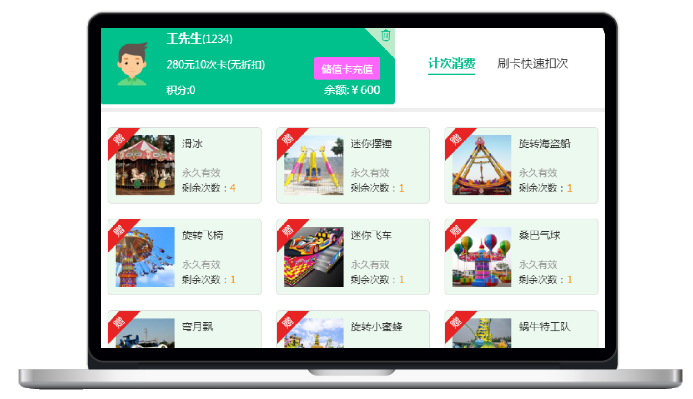 扣费,同时还可以刷卡快速扣次,提高了儿童乐园的管理效率。