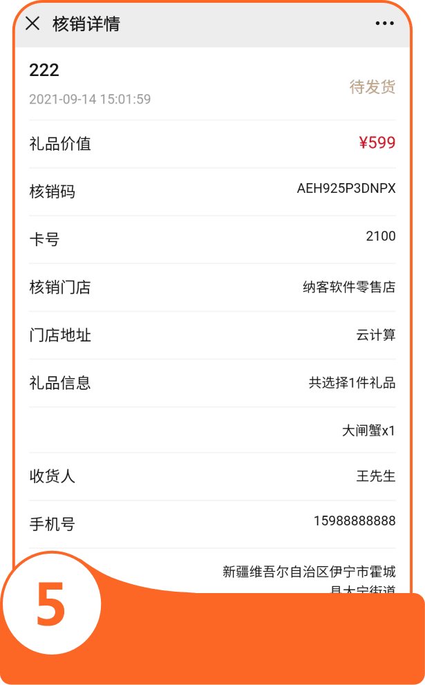 在兑换列表可以查看每个礼品卡的核销状态、核销门店、核销时间以及禁用或作废核销码