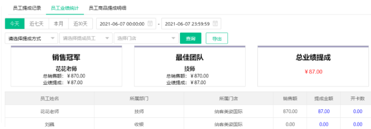 系统设定好员工提成比例,员工每销售一个产品都可获得对应提成,员工提成记录、员工业绩统计、员工商品提成明显在系统报表均清晰可见