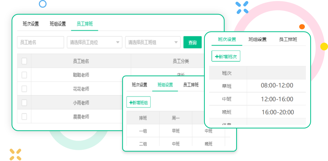 班次设置、班组设置、员工排班系统内直接搞定,再也不用担心员工的排班问题了