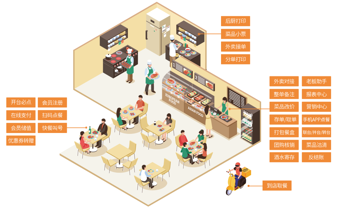 支持手机APP以及手持POS机点餐外卖/团购平台对接