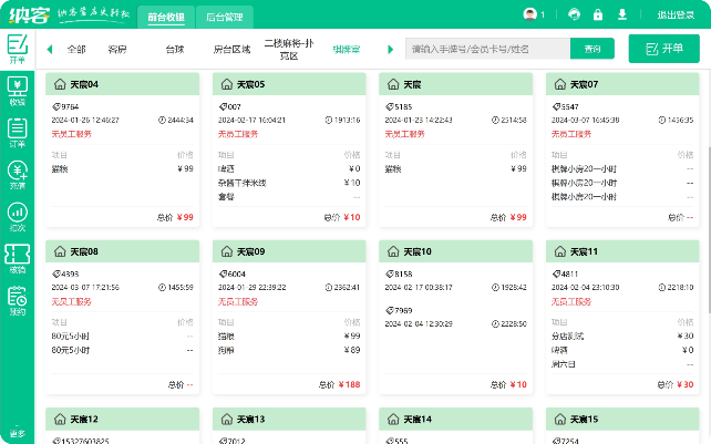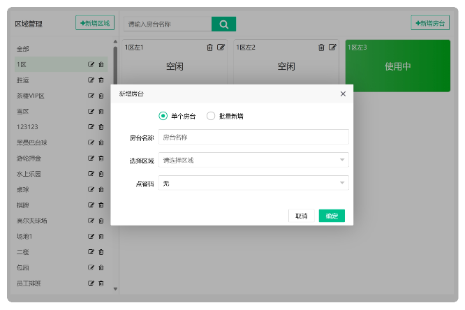 老板根据需要在后台进行区域管理和新增房台,管理更高效。