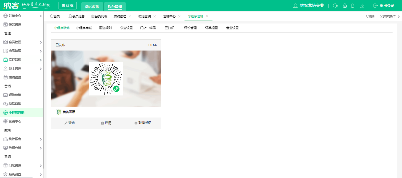 5、员工管理功能:如门店在线预约员工,或员工线上办公等;