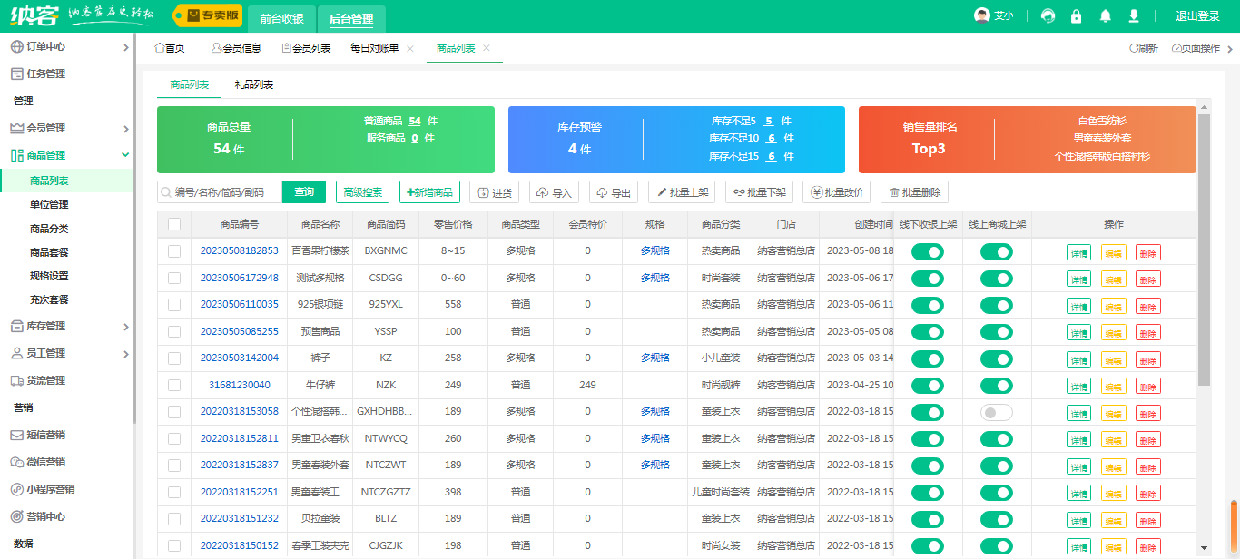 销售管理:能够统计商品的销售情况,设置不同的销售策略,进行促销;