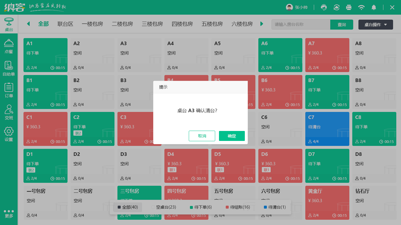 7、可支持客户在门店进行支付后,到收银前台进行消费。