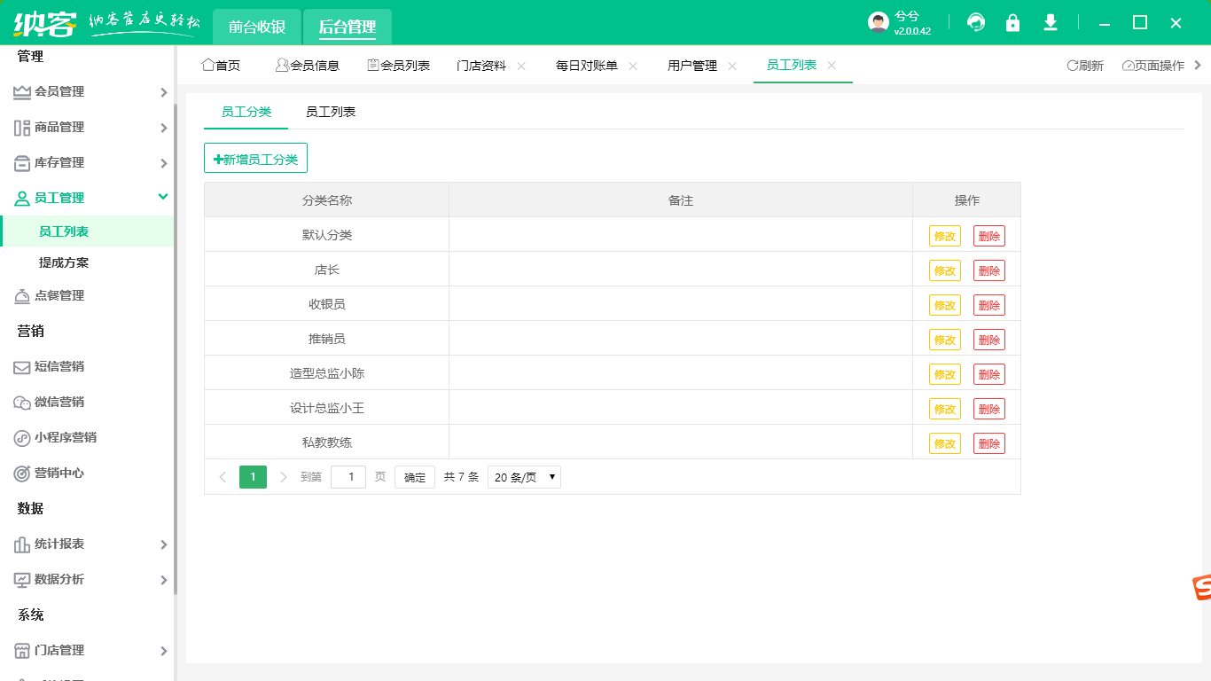管理员可对门店员工进行管理,包括添加员工、修改员工信息、删除员工等。