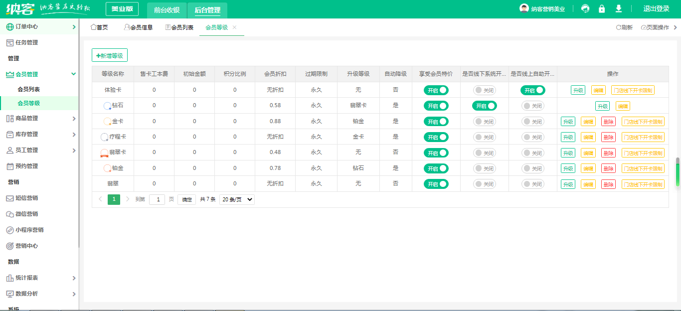 6、可根据不同类型的会员设置不同的会员卡优惠政策,如折扣或赠送礼品等。