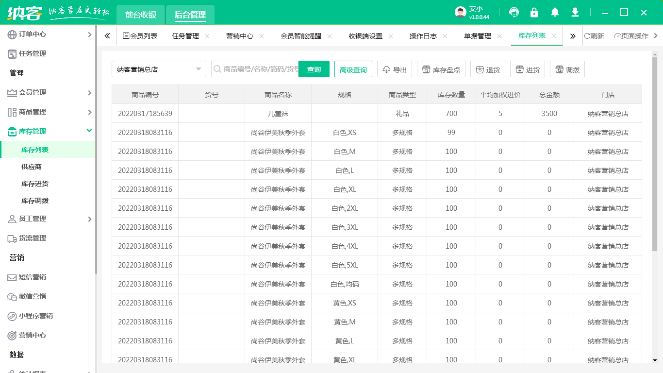 1、库存管理:支持商品入库、出库、调拨,以及库存预警等操作,还可以对商品进行库存盘点,同时也支持库存查询和统计。