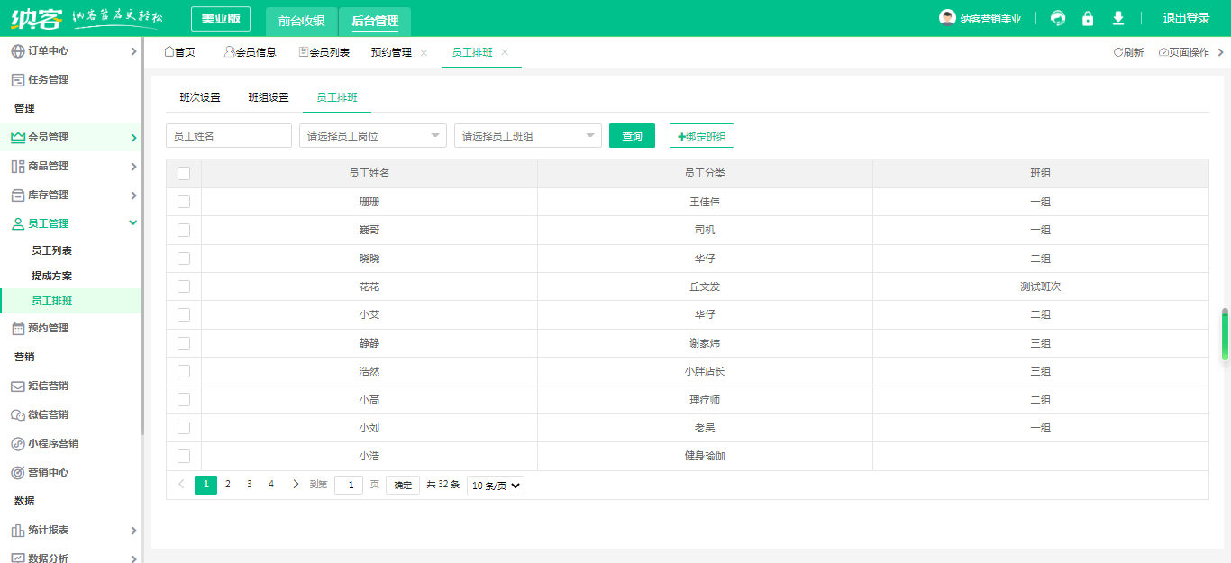 系统可以根据顾客的不同需求,合理安排时间、班次、人员、位置等,提高员工效率。排班管理功能包括: