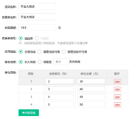 加油站营销券包系统后台管理